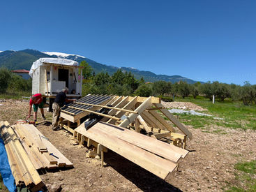 Instead of the planned one to two months of construction, it took a good seven months, even though we really tried to make progress. It took so long partly because we spent many hours waiting for the most auspicious times for various tasks. We believe/know that this ultimately helped a great deal. For example, we don't begin any major work during the waning moon, as it depletes energy, such as cleaning, sanding, painting, tidying up, etc. Using a comprehensive astrological approach, we tried to utilize the best possible times for each new construction phase. Just one example: the fabrication and installation of a door were also carried out separately at particularly auspicious times.